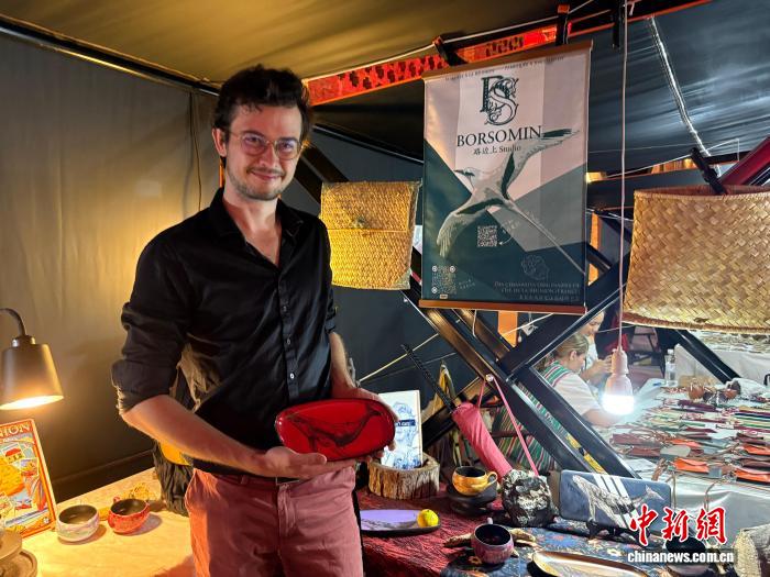 10月17日晚,一位法国艺术家在桃溪川春秋博览会上展示自己的作品。中新网记者 李云涵 摄